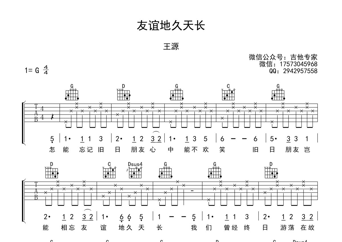 《友谊地久天长》是王源演唱的一首歌曲,本吉他谱采用的是G调指法编配,这份吉他谱共有两张高清图谱,图谱由 @吉他专家 编配上传,图谱使用六线谱编配,包含吉他和弦指法、简谱以及歌词部分,使用这份友谊地久天长吉他谱,可以让你更加方便地掌握这首歌曲的弹唱技巧,快来尝试吧。一首温暖人心的老歌新唱,电影《地久天长》推广曲,怎能忘记旧日朋友,心中能不欢笑,旧日朋友岂能相忘,友谊地久天长。歌声舒缓,琴声悠悠,诉说着一段温暖的往日时光,岁月流转变迁,而情谊长存心间,一首经典旋律,带给我们无尽的回忆和感动。