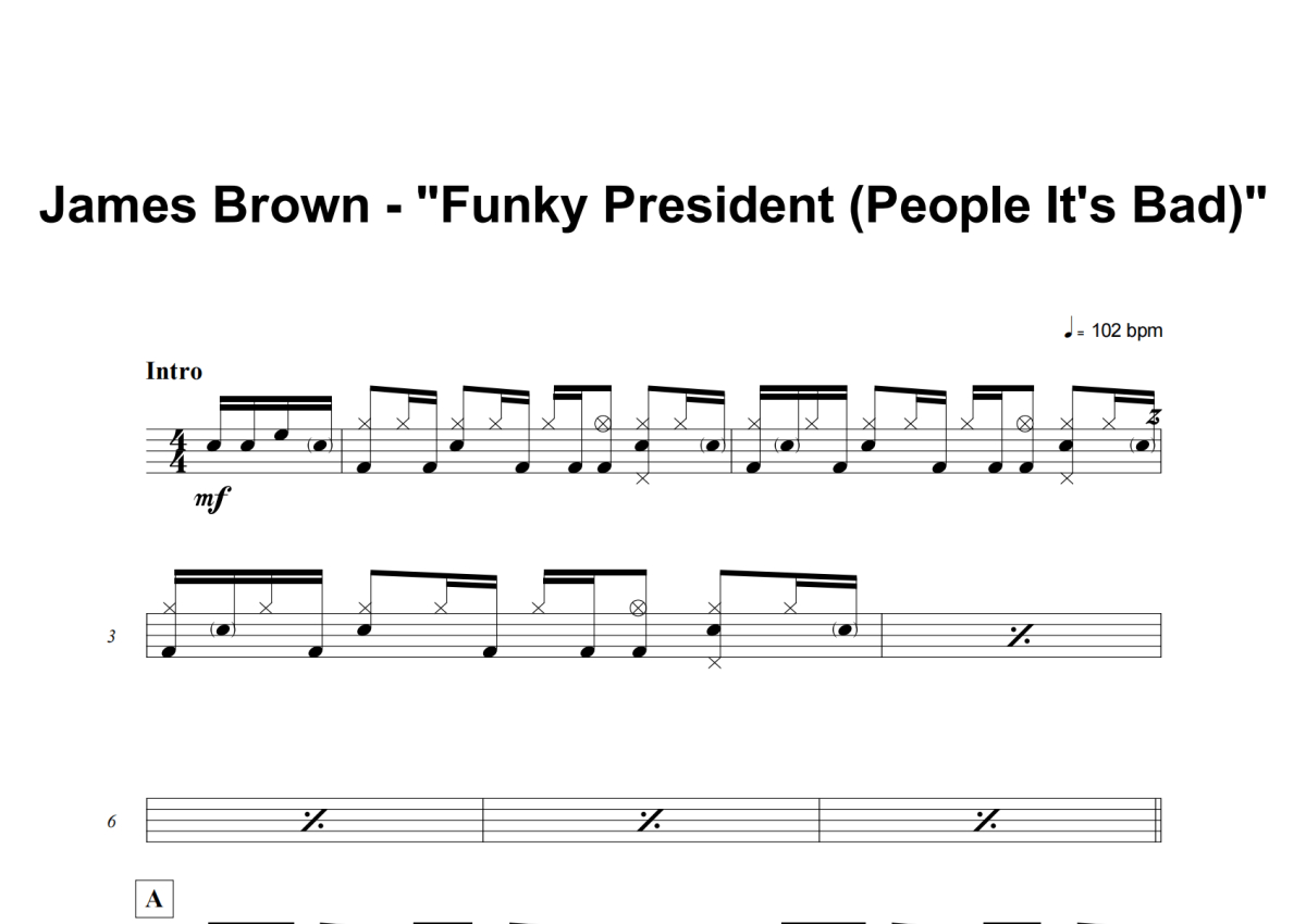 James Brown《Funky President (People It's Bad)》架子鼓谱