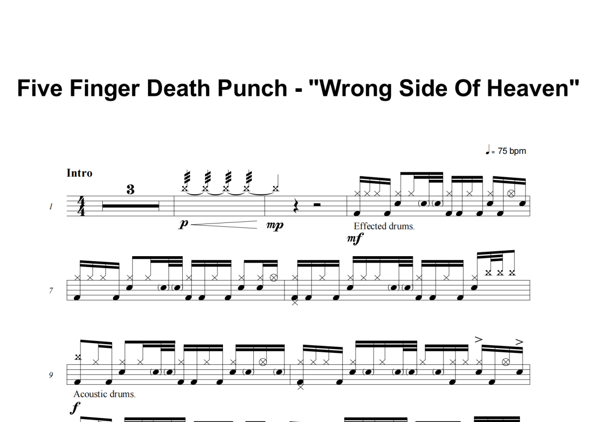 Five Finger Death Punch《Wrong Side Of Heaven》架子鼓谱