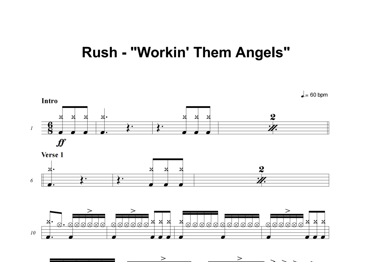 《Workin' Them Angels》是Rush演唱的一首歌曲,这份架子鼓谱共有五张高清图谱,图谱由 @积极处世 编配上传,图谱使用五线谱编配,使用这份Workin' Them Angels架子鼓谱,你将能够轻松地敲打出这首Rush的Workin' Them Angels,快来尝试吧。