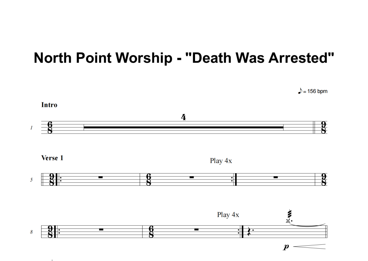 《Death Was Arrested》是North Point Worship演唱的一首歌曲,这份架子鼓谱共有四张高清图谱,图谱由 @积极处世 编配上传,图谱使用五线谱编配,使用这份Death Was Arrested架子鼓谱,你将能够轻松地敲打出这首North Point Worship的Death Was Arrested,快来尝试吧。