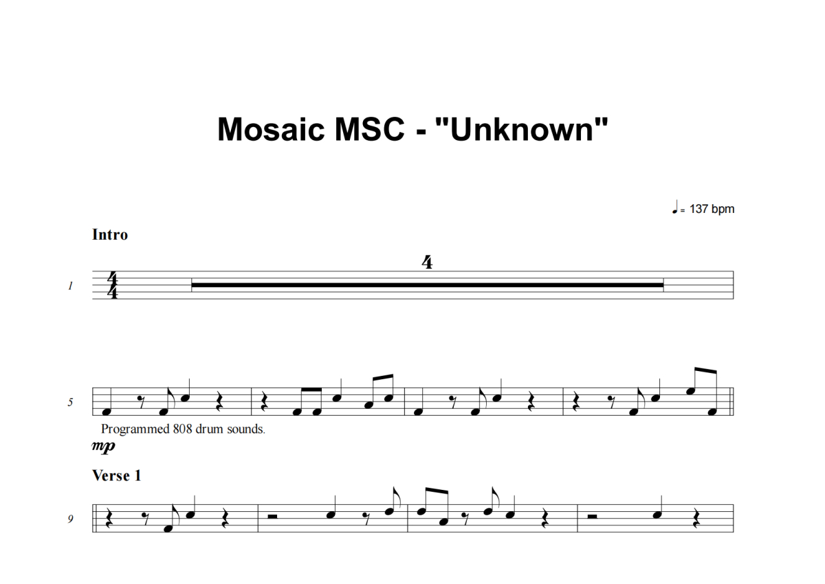 Mosaic MSC《Unknown》架子鼓谱