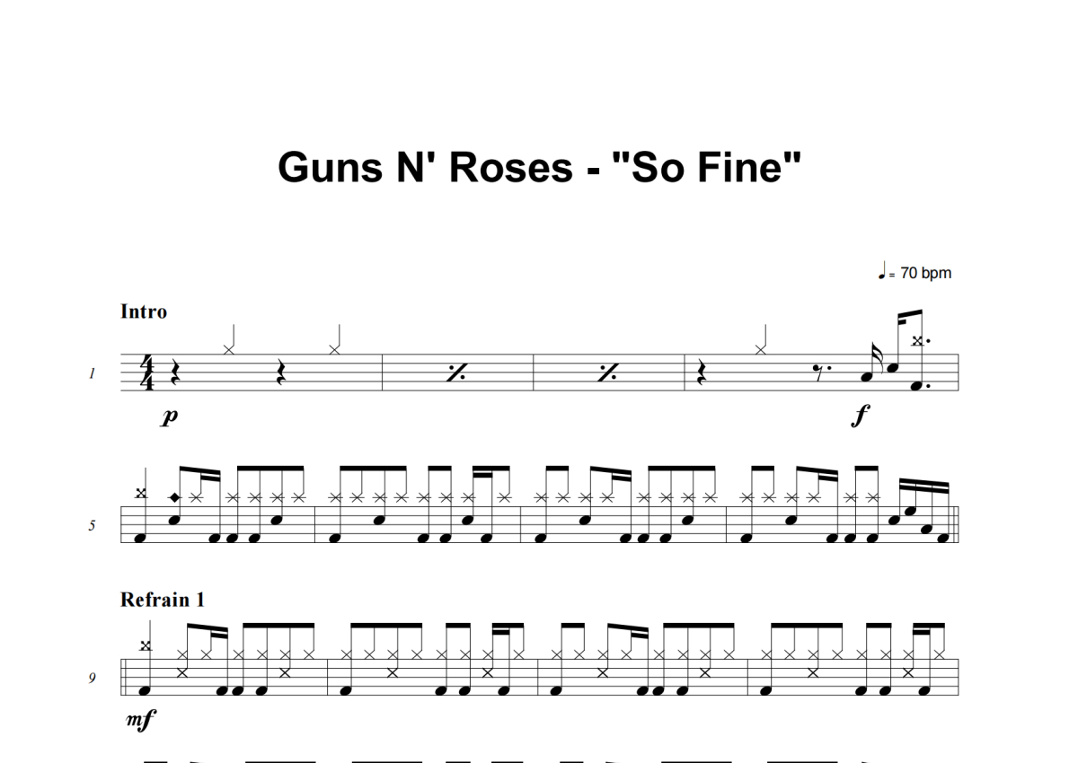 Guns N' Roses《So Fine》架子鼓谱