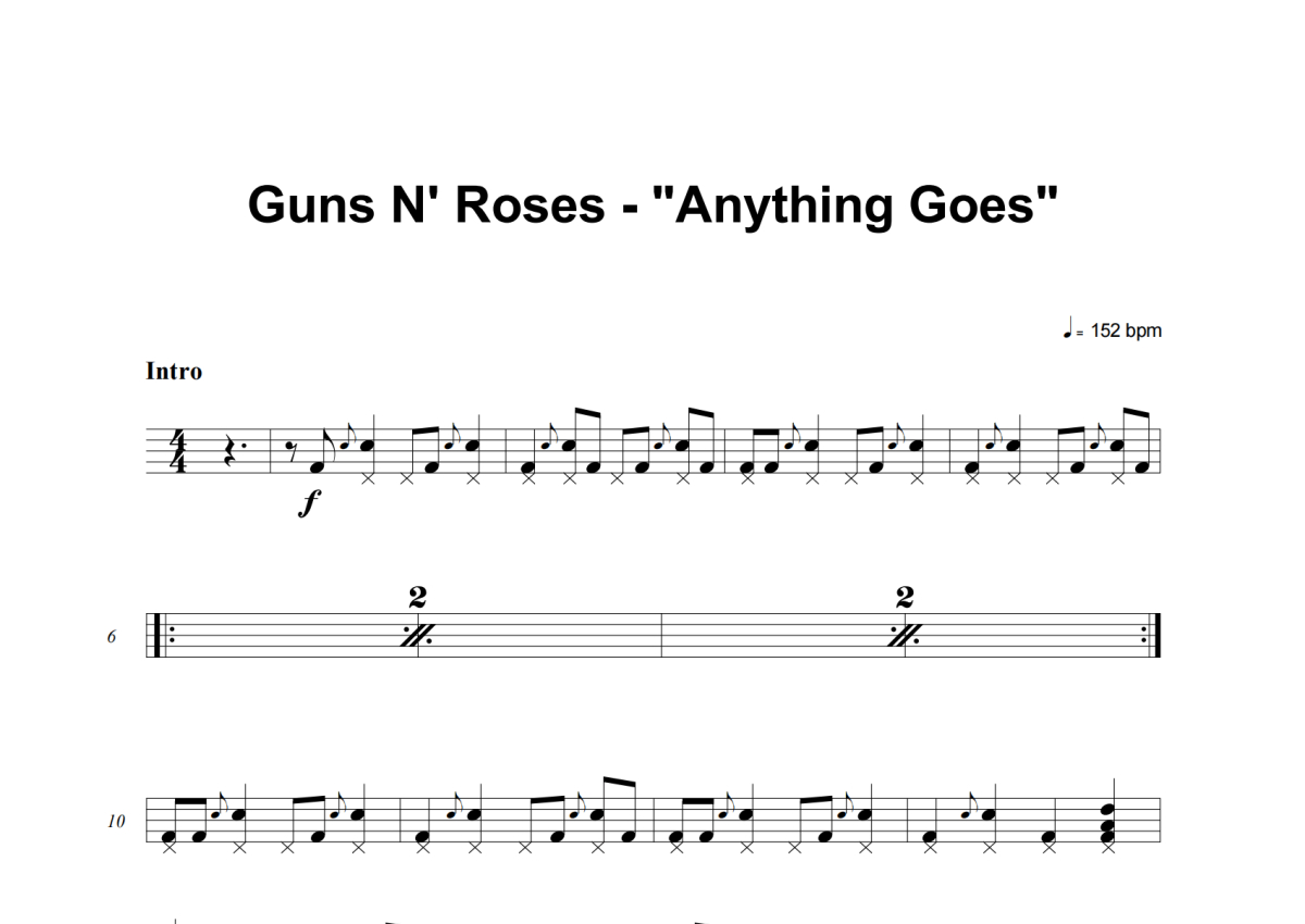 Guns N' Roses《Anything Goes》架子鼓谱