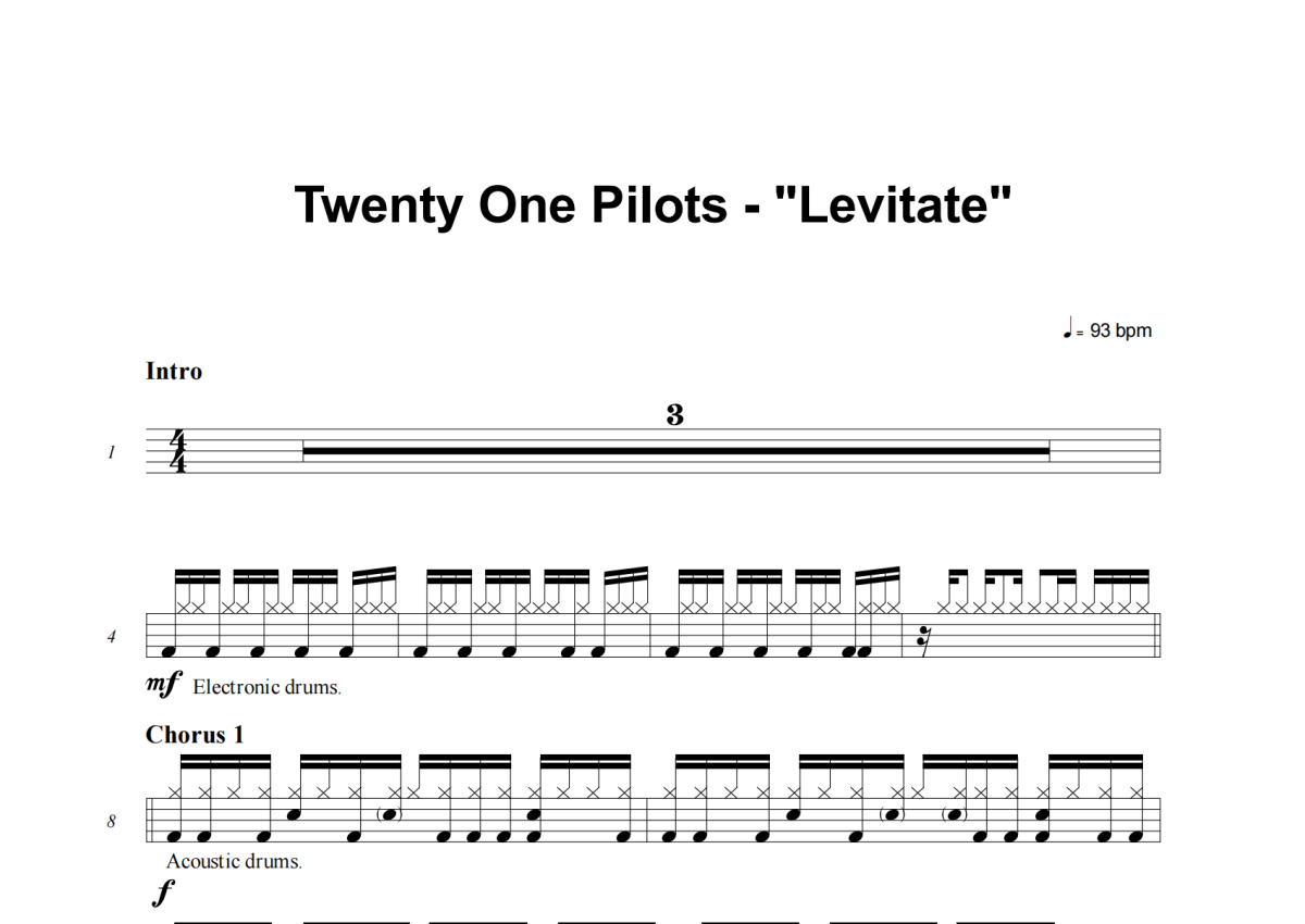 Twenty One Pilots《Levitate》架子鼓谱
