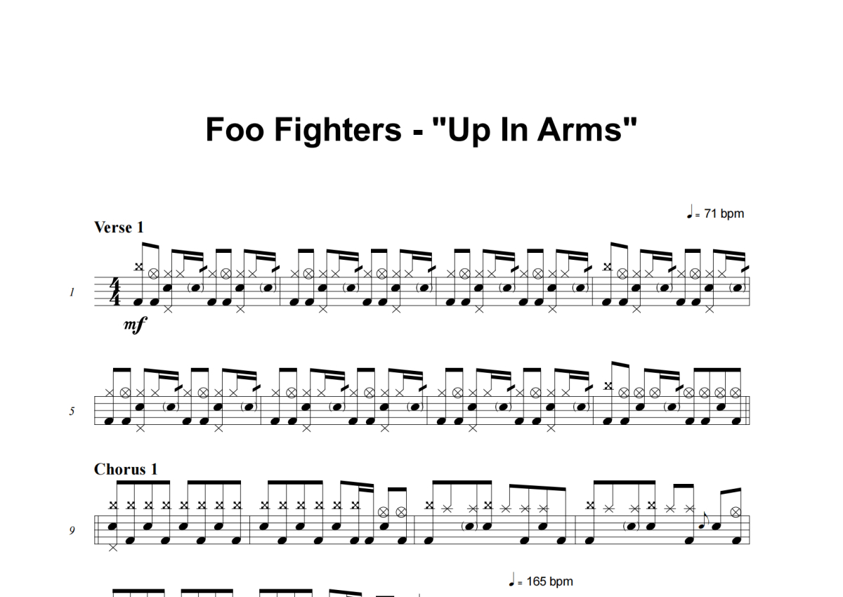 Foo Fighters《Up In Arms》架子鼓谱