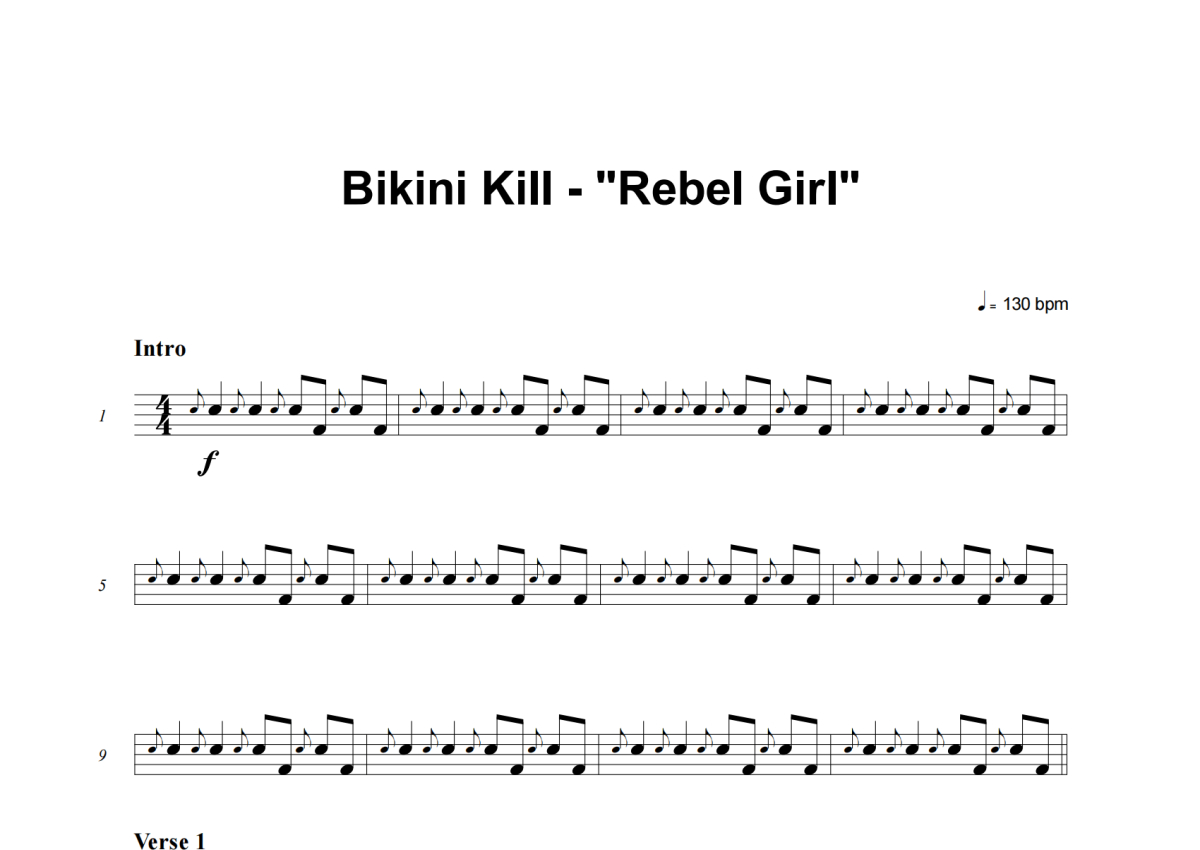 Bikini Kill《Rebel Girl》架子鼓谱