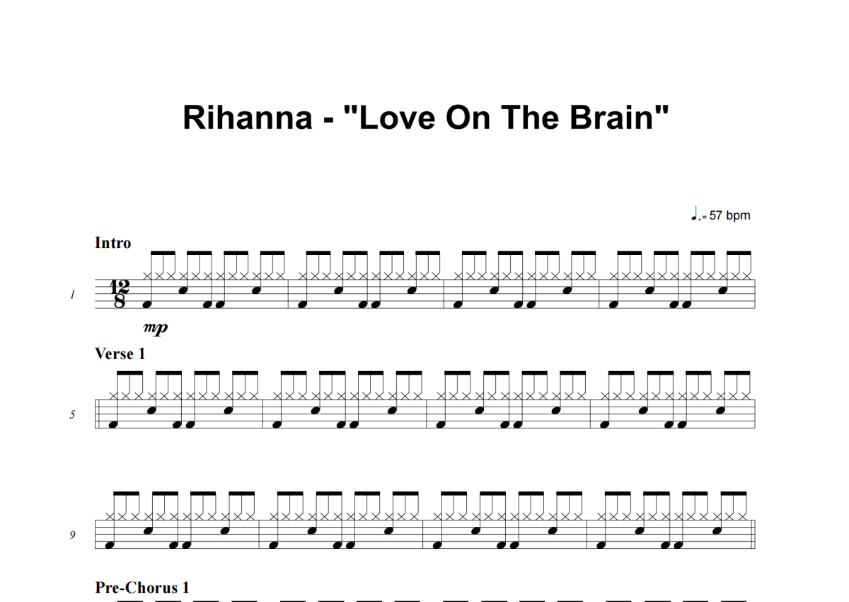 Rihanna《Love On The Brain》架子鼓谱