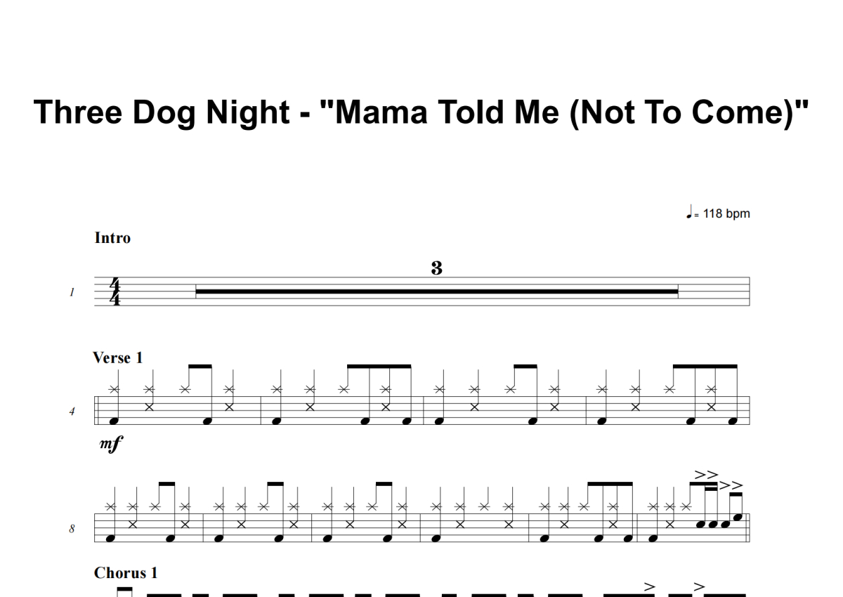 Three Dog Night《Mama Told Me (Not To Come)》架子鼓谱