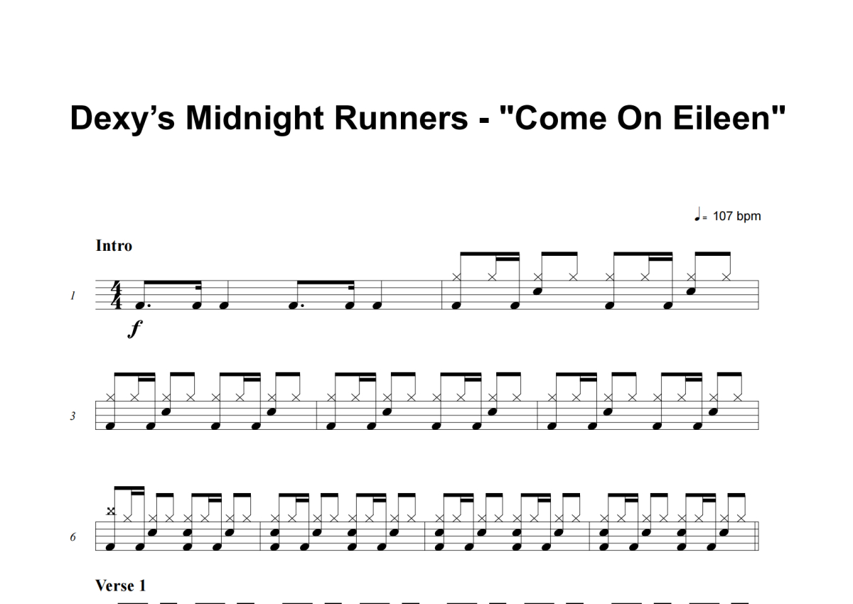 Dexy’s Midnight Runners《Come On Eileen》架子鼓谱