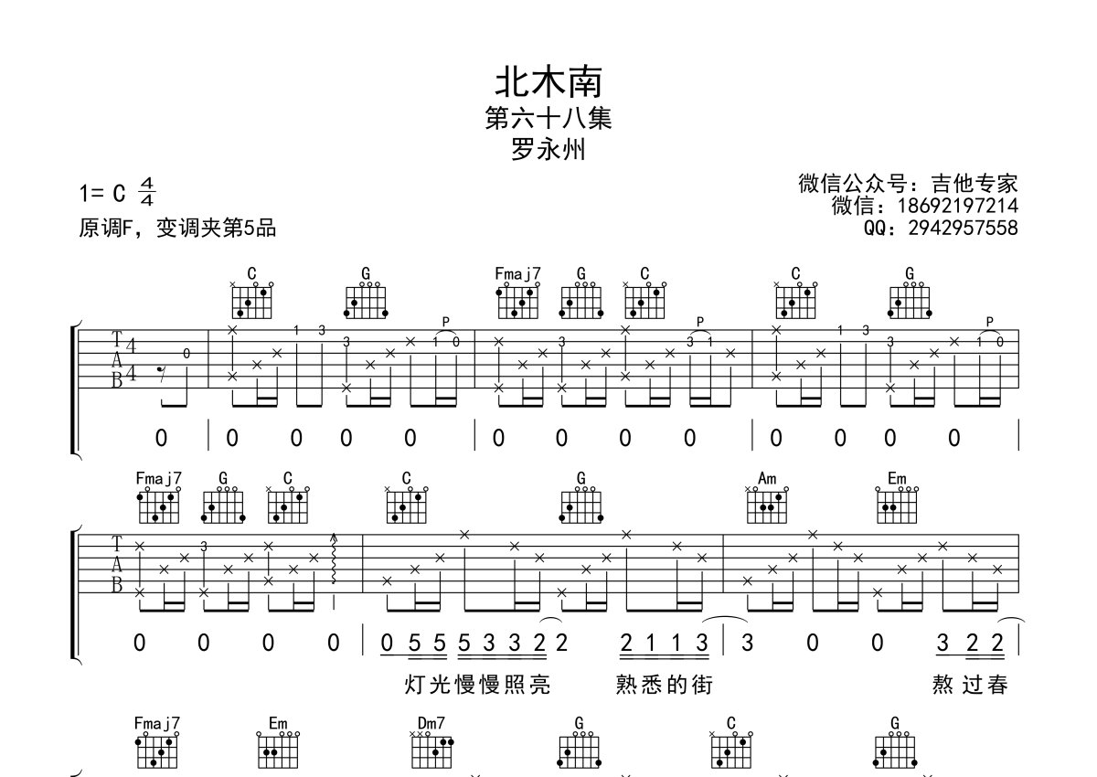 罗永州《北木南》吉他谱 - C调弹唱六线谱