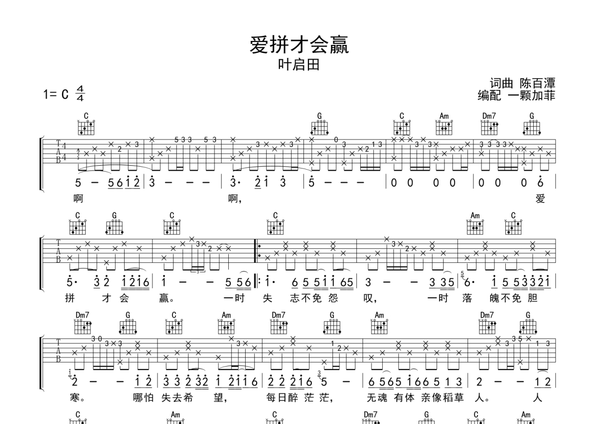 叶启田《爱拼才会赢》吉他谱 - C调弹唱六线谱