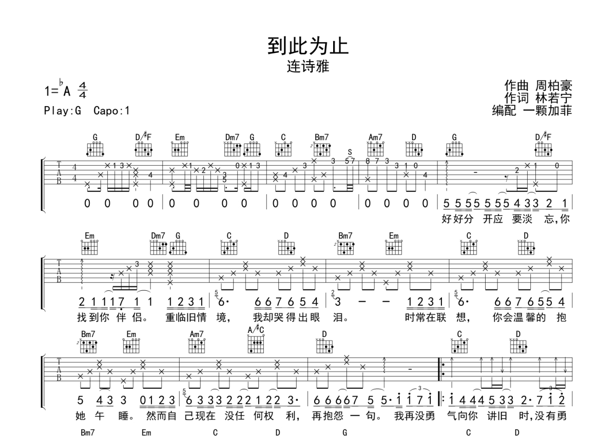 到此为止吉他谱 - 连诗雅演唱 - G调弹唱六线谱