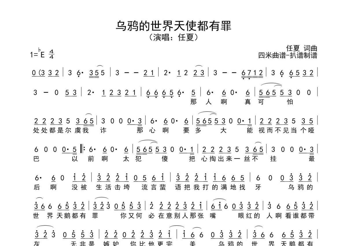 《乌鸦的世界天鹅都有罪》是任夏演唱的一首歌曲,拍号为4/4拍,这份简谱共有一张高清图谱,图谱由 @SRV7758521 编配上传。