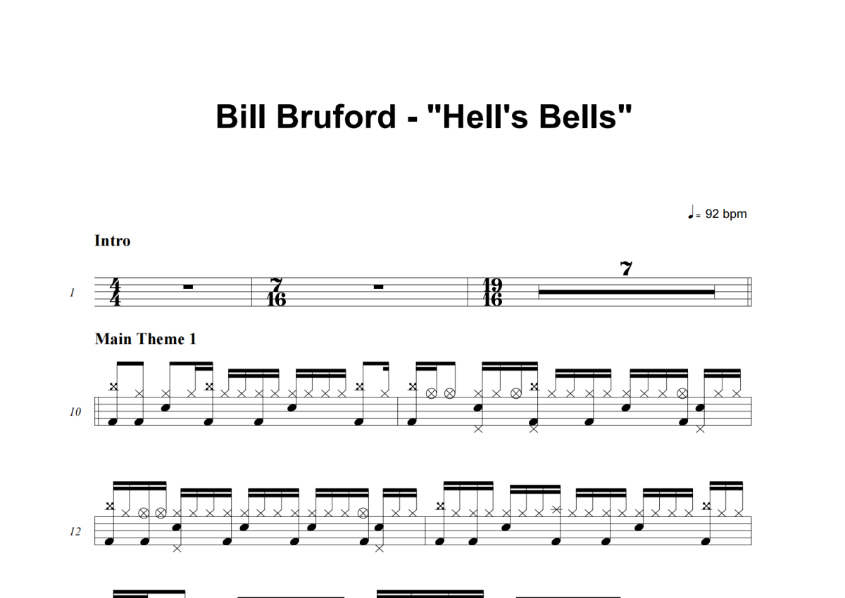 Bill Bruford《Hell's Bells》架子鼓谱