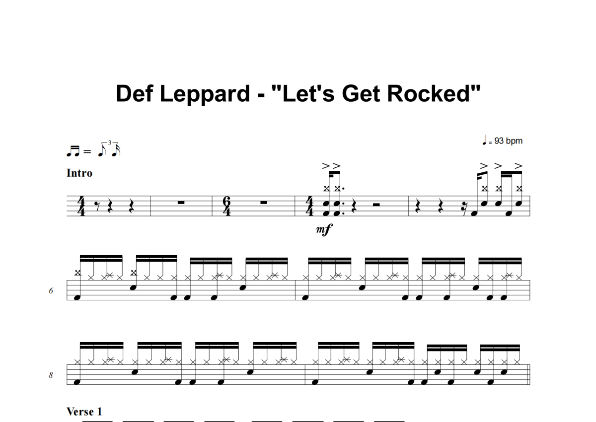 Def Leppard《Let's Get Rocked》架子鼓谱