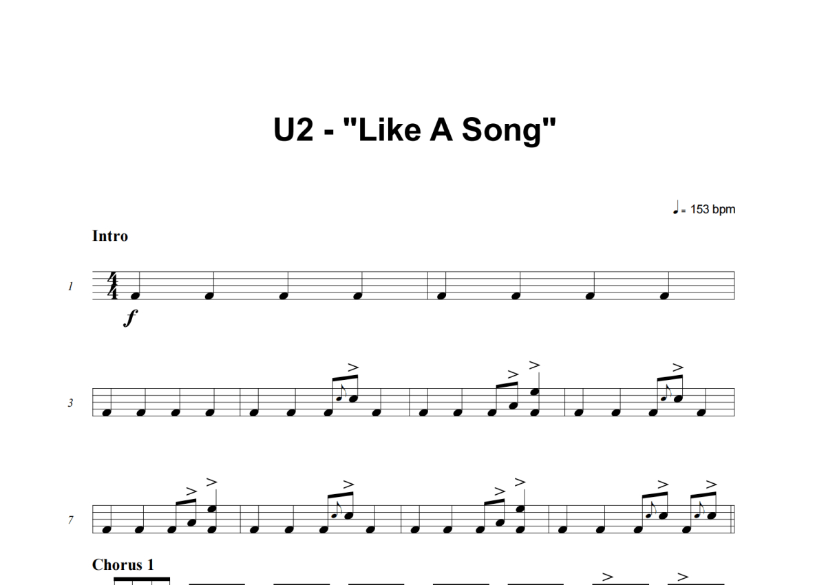 U2《Like A Song》架子鼓谱