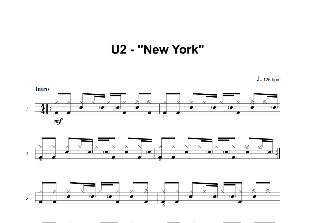 U2《New York》架子鼓谱