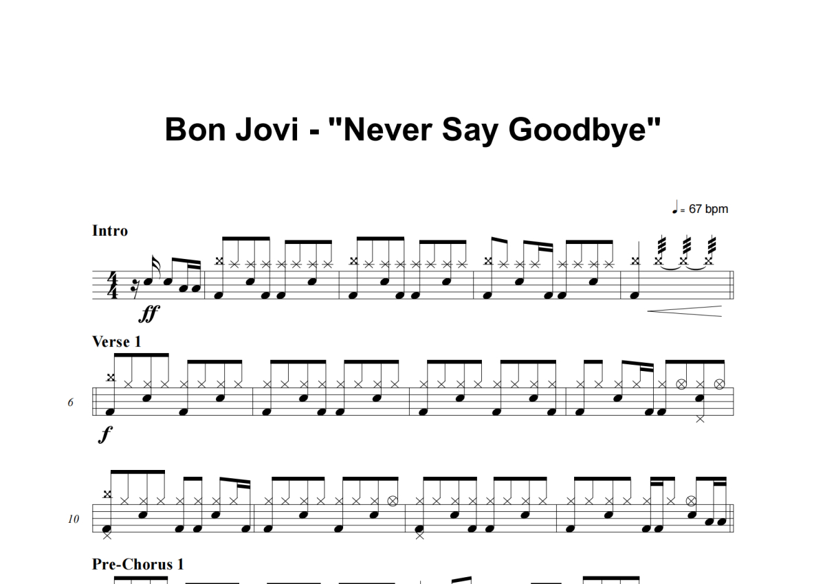 Bon Jovi《Never Say Goodbye》架子鼓谱