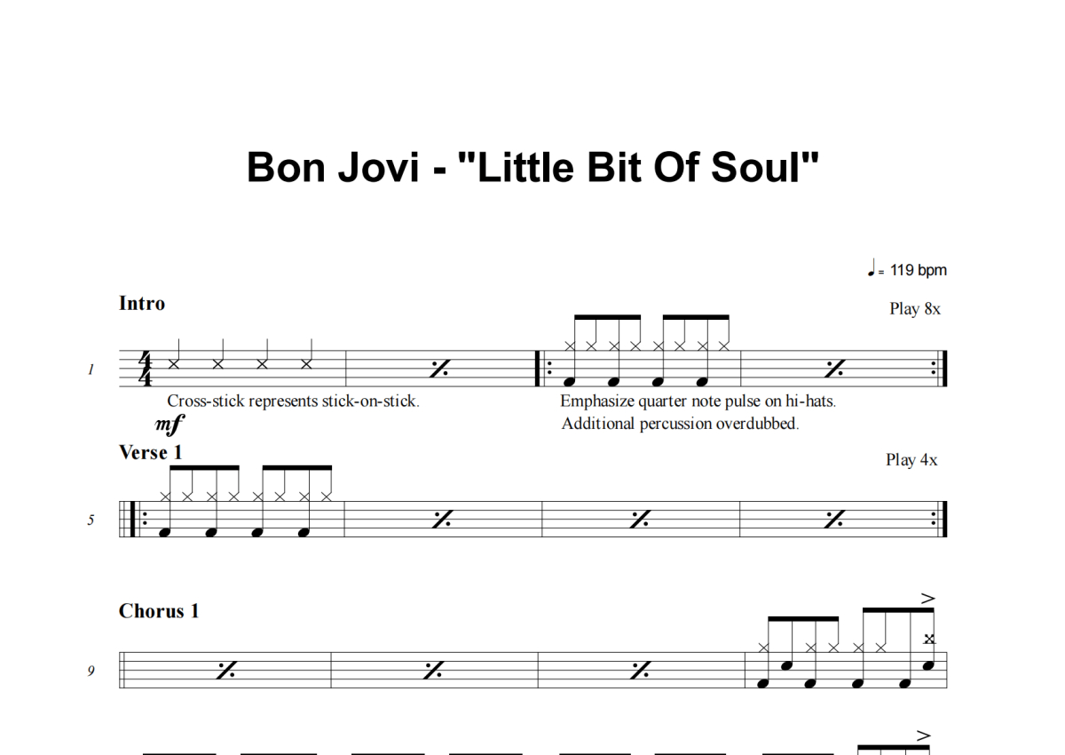 Bon Jovi《Little Bit Of Soul》架子鼓谱