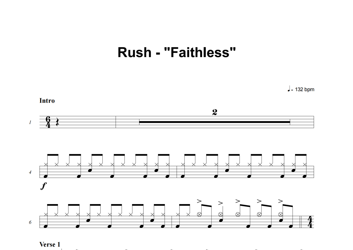 《Faithless》是Rush演唱的一首歌曲,这份架子鼓谱共有六张高清图谱,图谱由 @积极处世 编配上传,图谱使用五线谱编配,使用这份Faithless架子鼓谱,你将能够轻松地敲打出这首Rush的Faithless,快来尝试吧。