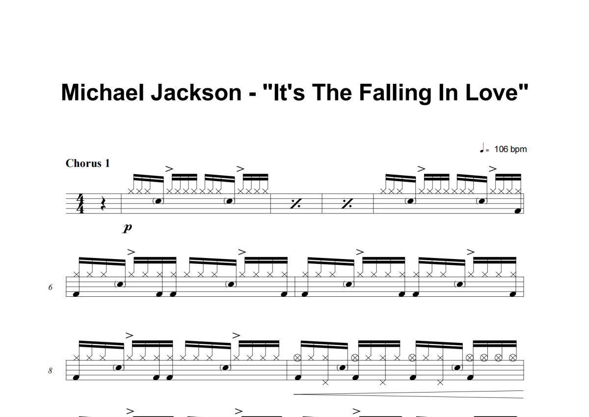 Michael Jackson《It's The Falling In Love》架子鼓谱