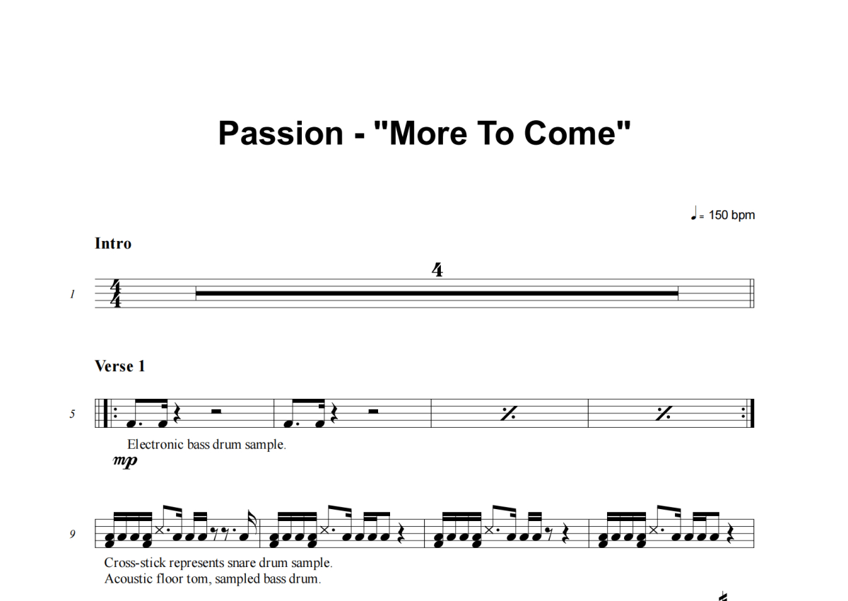 Passion《More To Come》架子鼓谱
