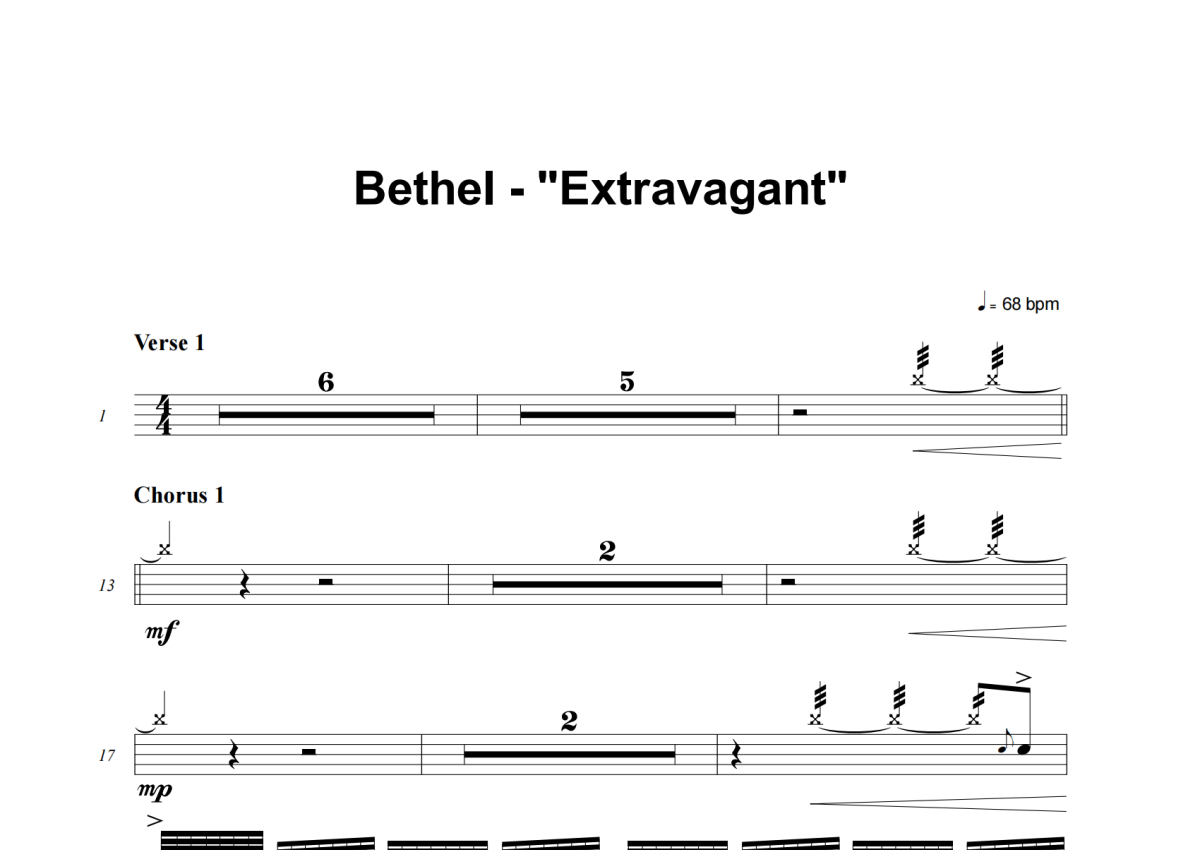 Bethel Music《Extravagant》架子鼓谱