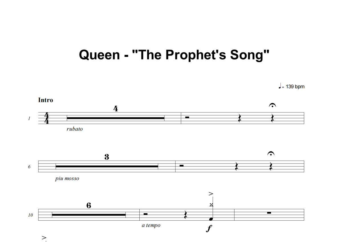 Queen《The Prophet's Song》架子鼓谱