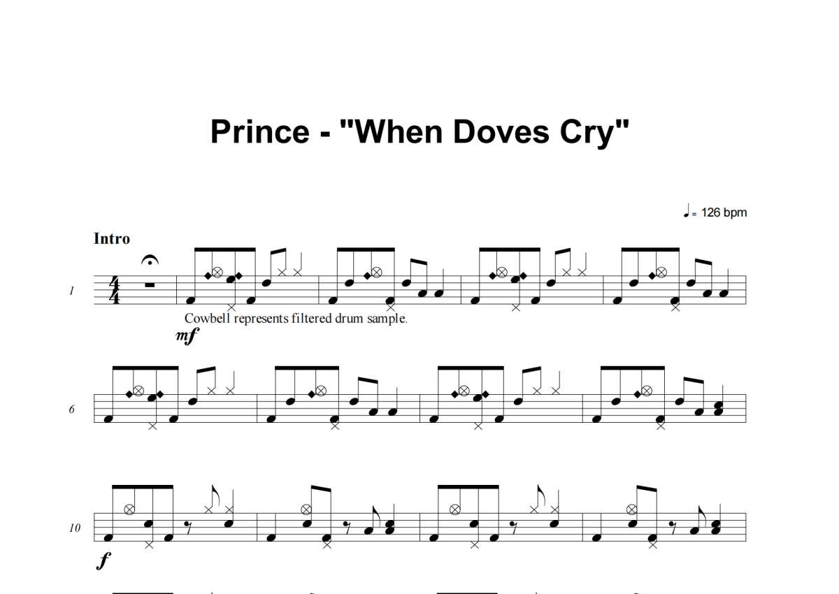 《When Doves Cry》是Prince演唱的一首歌曲,这份架子鼓谱共有六张高清图谱,图谱由 @积极处世 编配上传,图谱使用五线谱编配,使用这份When Doves Cry架子鼓谱,你将能够轻松地敲打出这首Prince的When Doves Cry,快来尝试吧。