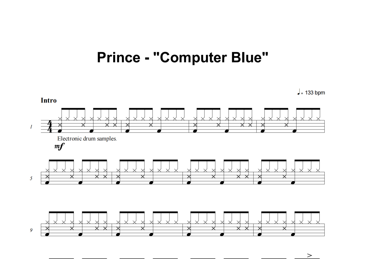 Prince《Computer Blue》架子鼓谱
