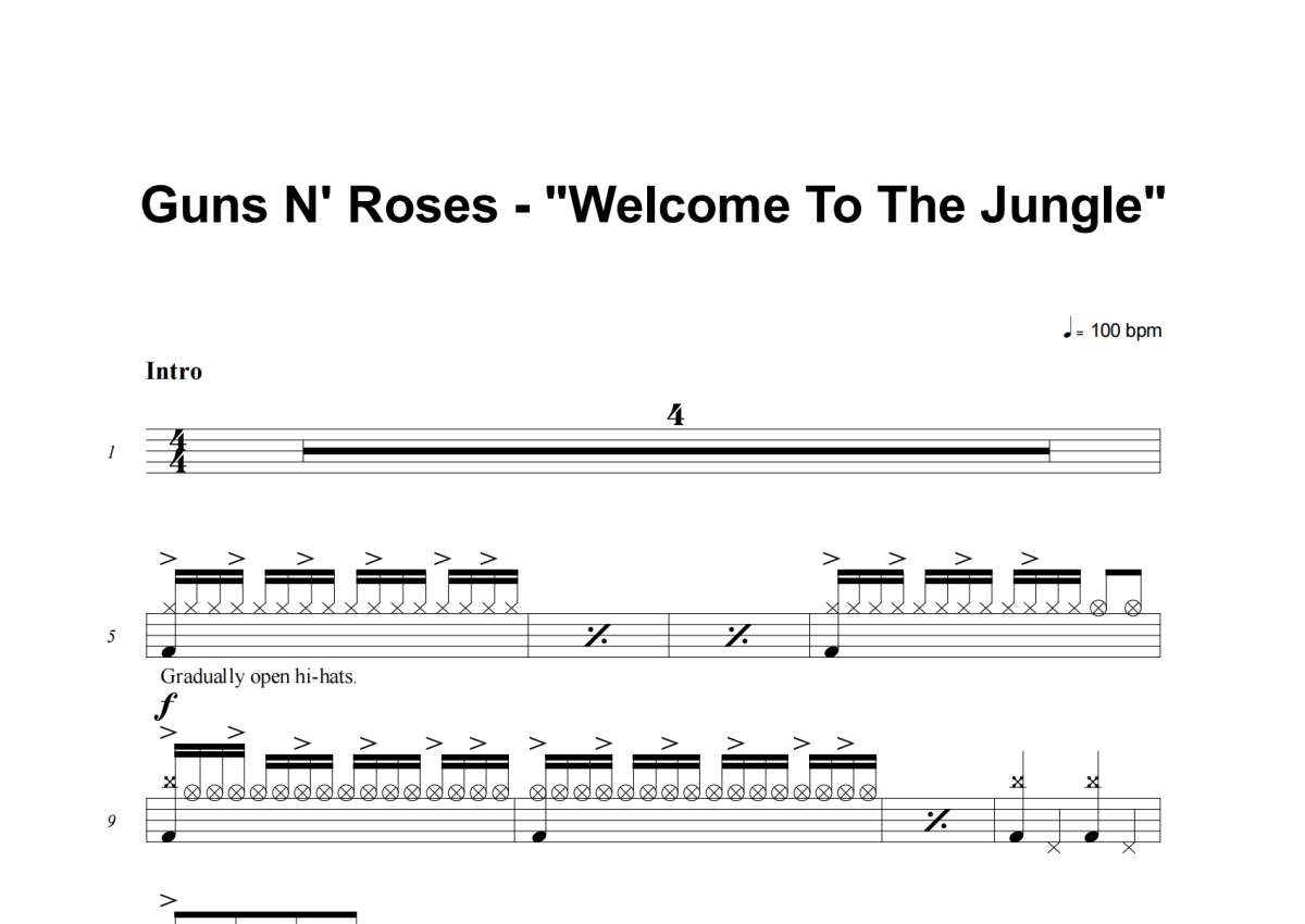 Welcome To The Jungle架子鼓谱 - Guns N' Roses演唱