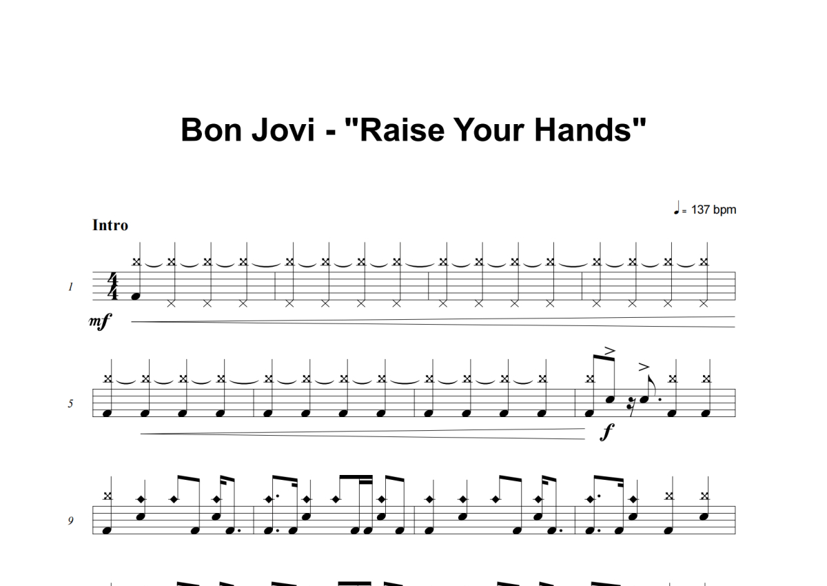 Bon Jovi《Raise Your Hands》架子鼓谱
