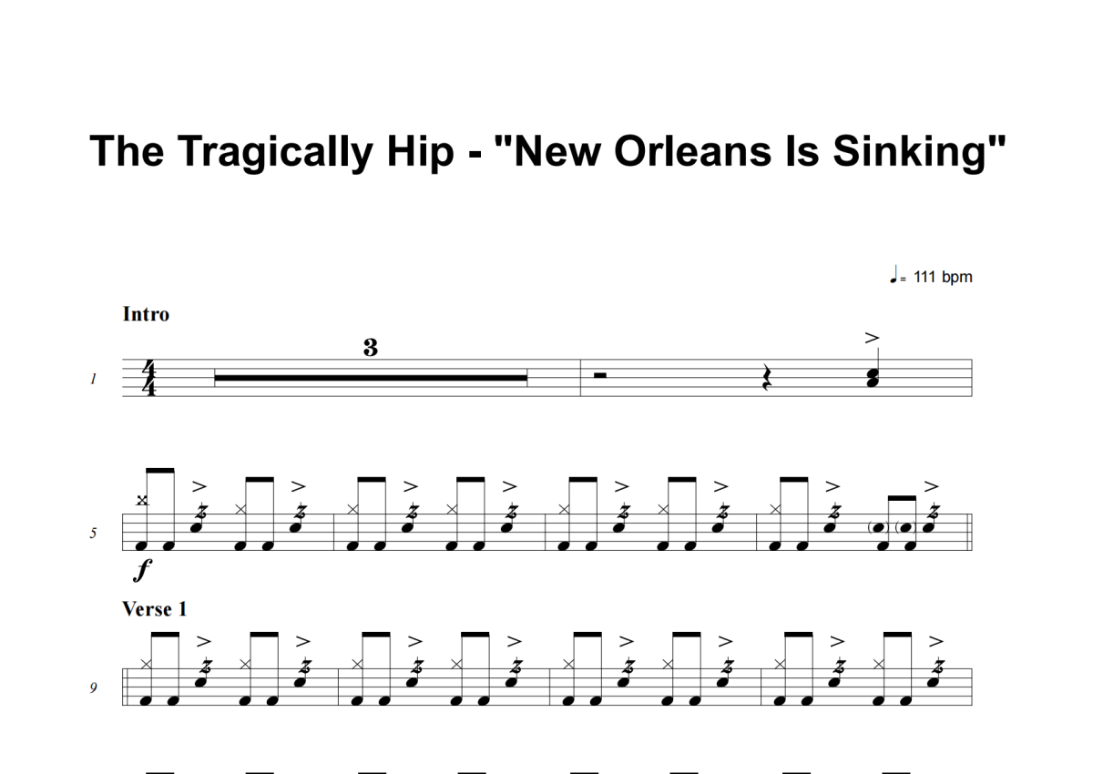 The Tragically Hip《New Orleans Is Sinking》架子鼓谱