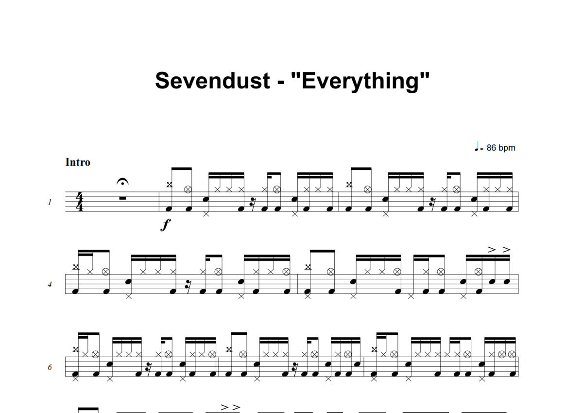《Everything》是Sevendust演唱的一首歌曲,这份架子鼓谱共有四张高清图谱,图谱由 @举个例子 编配上传,图谱使用五线谱编配,使用这份Everything架子鼓谱,你将能够轻松地敲打出这首Sevendust的Everything,快来尝试吧。