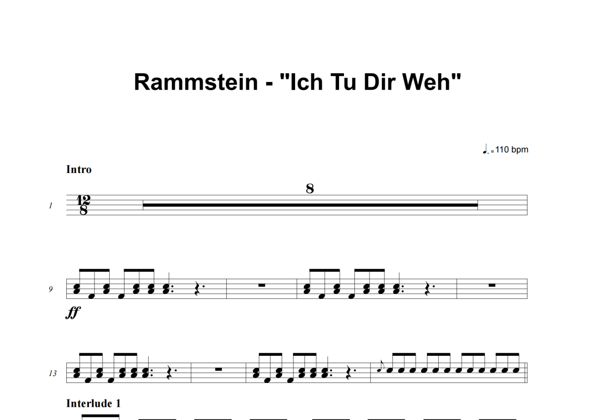 Rammstein《Ich Tu Dir Weh》架子鼓谱