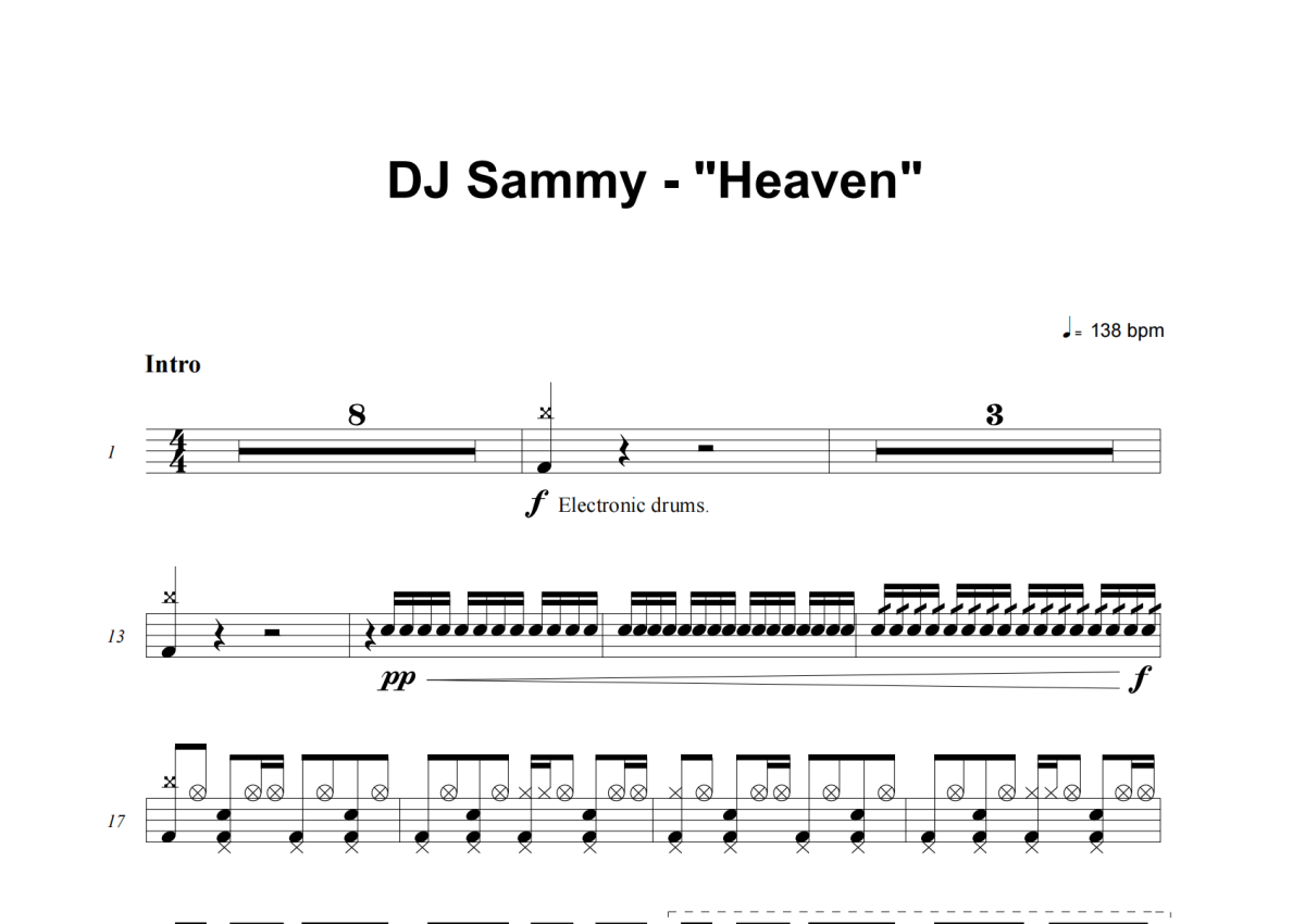 DJ Sammy《Heaven》架子鼓谱