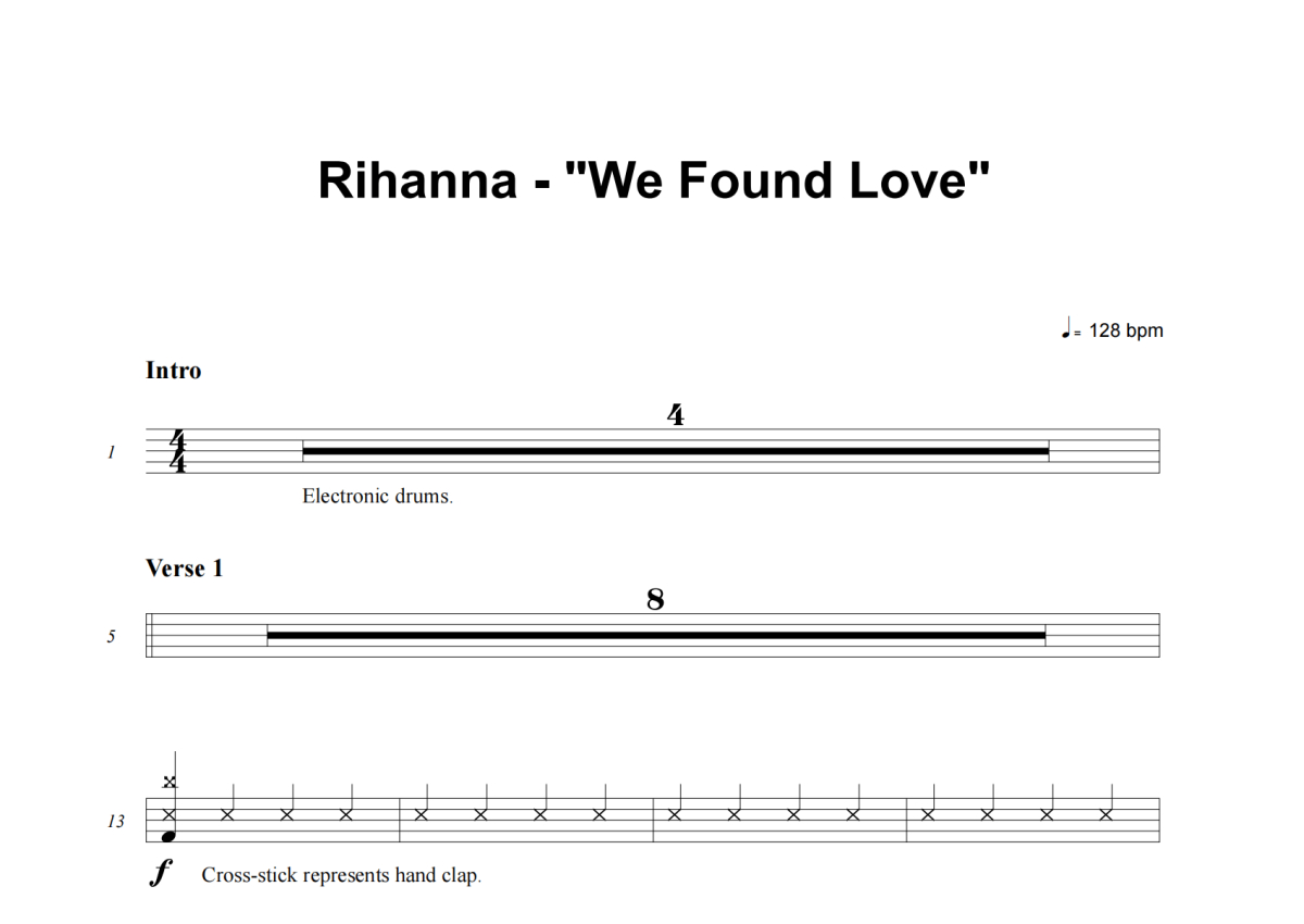 Rihanna《We Found Love》架子鼓谱