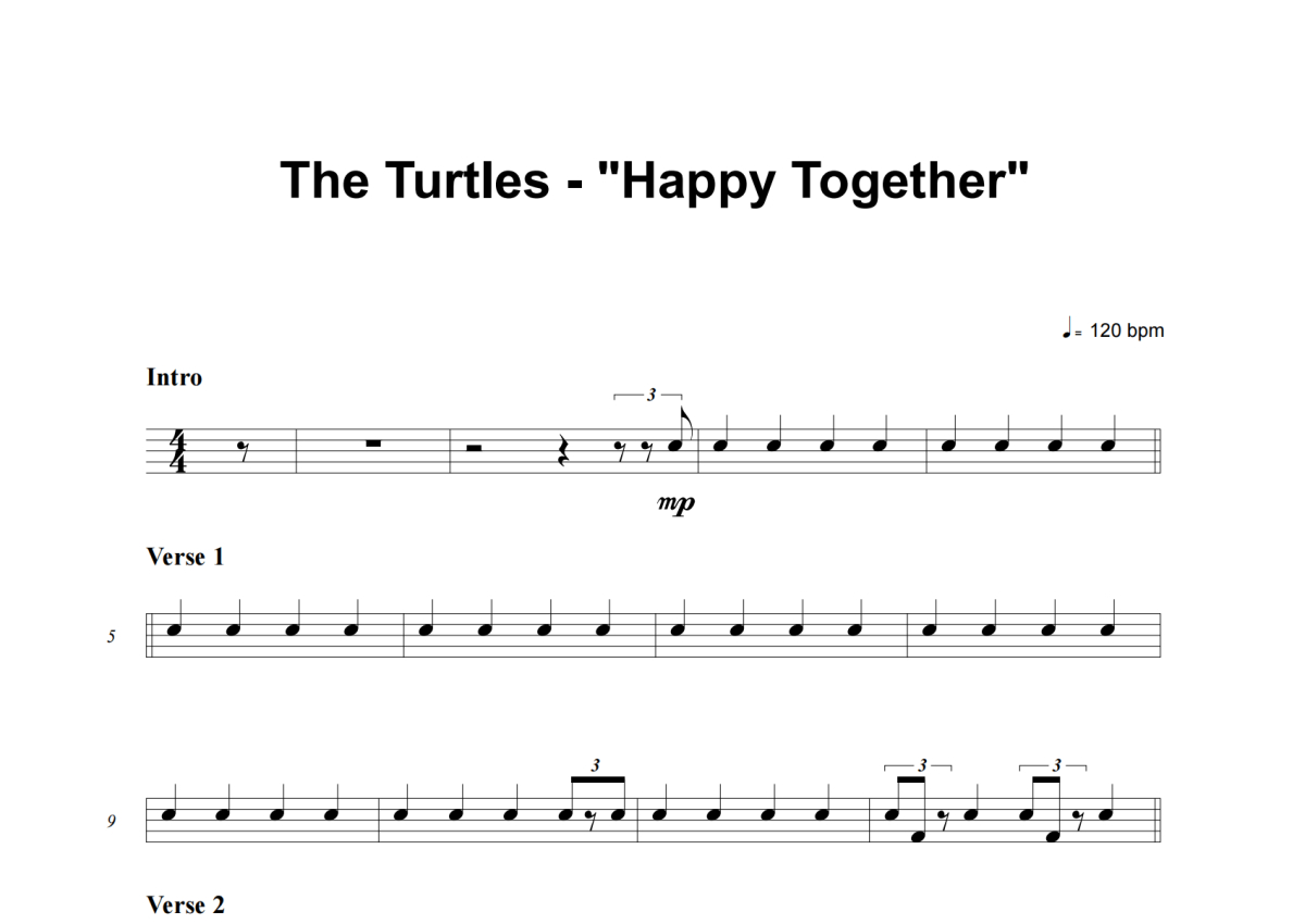 The Turtles《Happy Together》架子鼓谱