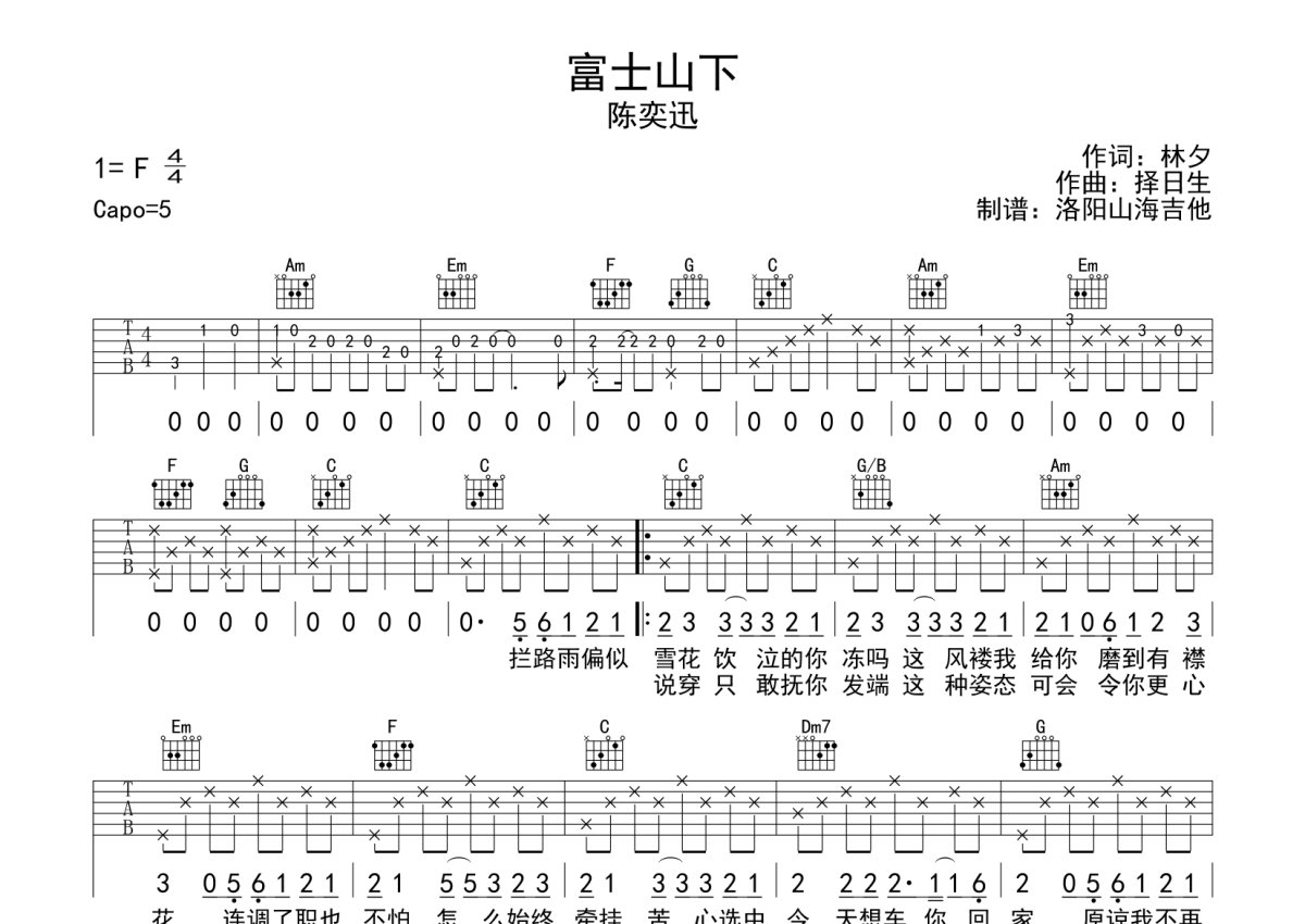 陈奕迅《富士山下》吉他谱 - C调弹唱六线谱