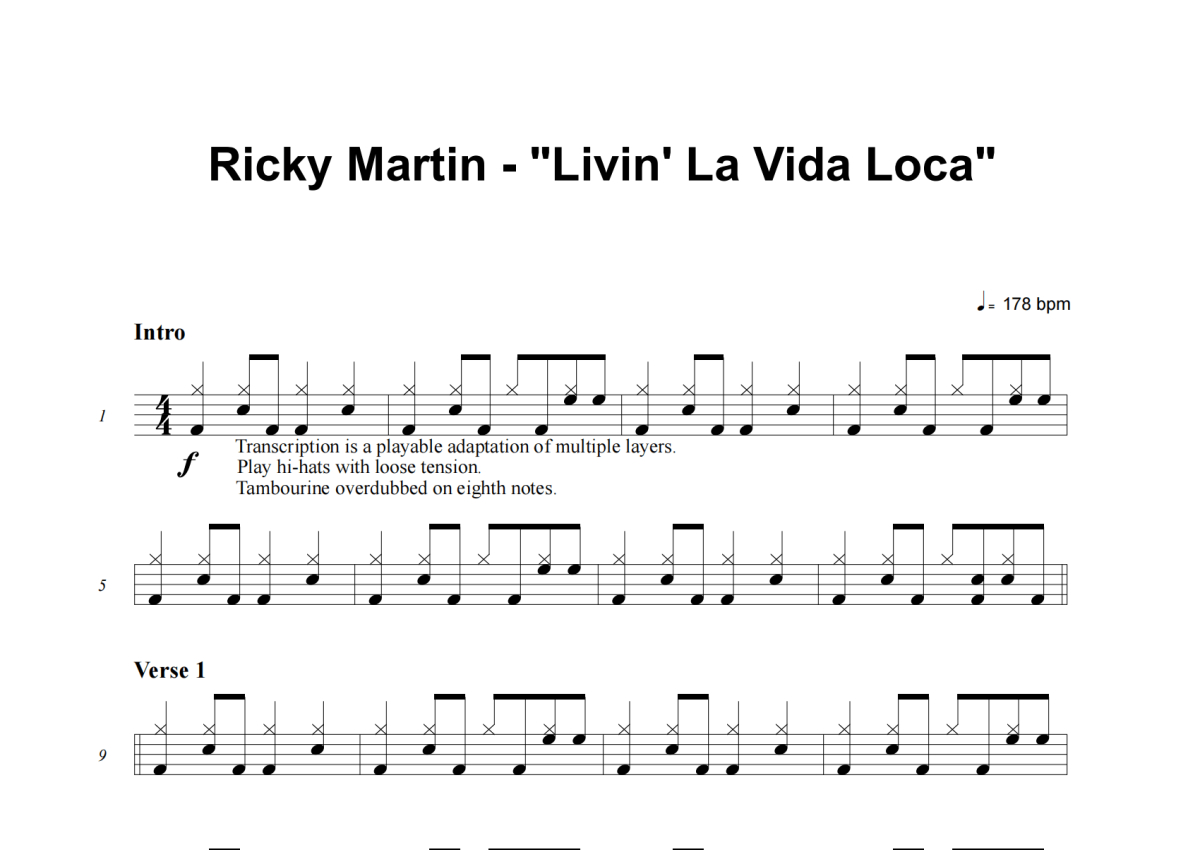 Ricky Martin《Livin’ La Vida Loca》架子鼓谱