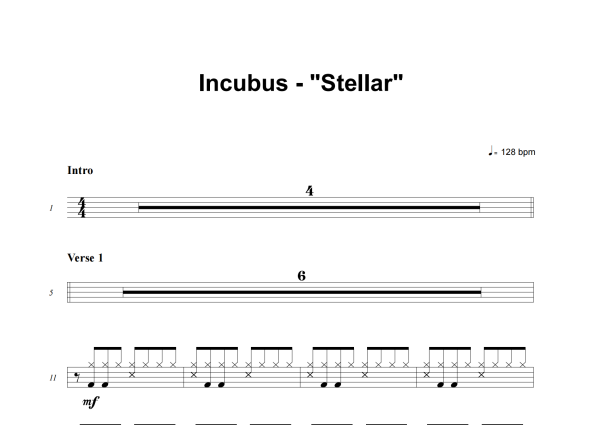 Incubus《Stellar》架子鼓谱
