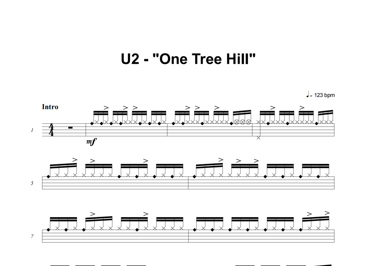 《One Tree Hill》是U2演唱的一首歌曲,这份架子鼓谱共有六张高清图谱,图谱由 @举个例子 编配上传,图谱使用五线谱编配,使用这份One Tree Hill架子鼓谱,你将能够轻松地敲打出这首U2的One Tree Hill,快来尝试吧。