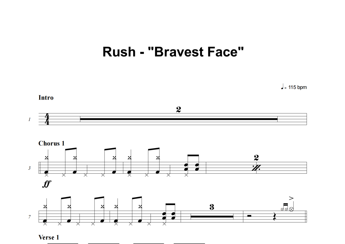 《Bravest Face》是Rush演唱的一首歌曲,这份架子鼓谱共有六张高清图谱,图谱由 @举个例子 编配上传,图谱使用五线谱编配,使用这份Bravest Face架子鼓谱,你将能够轻松地敲打出这首Rush的Bravest Face,快来尝试吧。