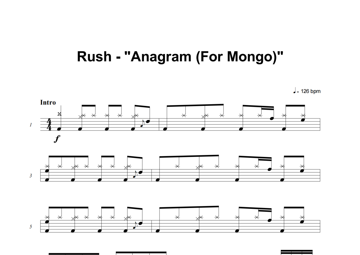 《Anagram (For Mongo)》是Rush演唱的一首歌曲,这份架子鼓谱共有六张高清图谱,图谱由 @举个例子 编配上传,图谱使用五线谱编配,使用这份Anagram (For Mongo)架子鼓谱,你将能够轻松地敲打出这首Rush的Anagram (For Mongo),快来尝试吧。