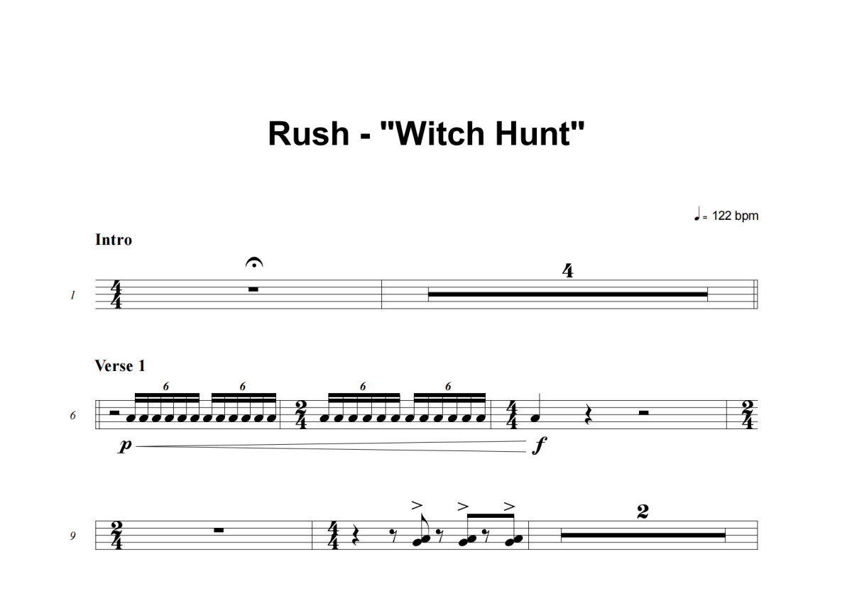 《Witch Hunt》是Rush演唱的一首歌曲,这份架子鼓谱共有六张高清图谱,图谱由 @举个例子 编配上传,图谱使用五线谱编配,使用这份Witch Hunt架子鼓谱,你将能够轻松地敲打出这首Rush的Witch Hunt,快来尝试吧。