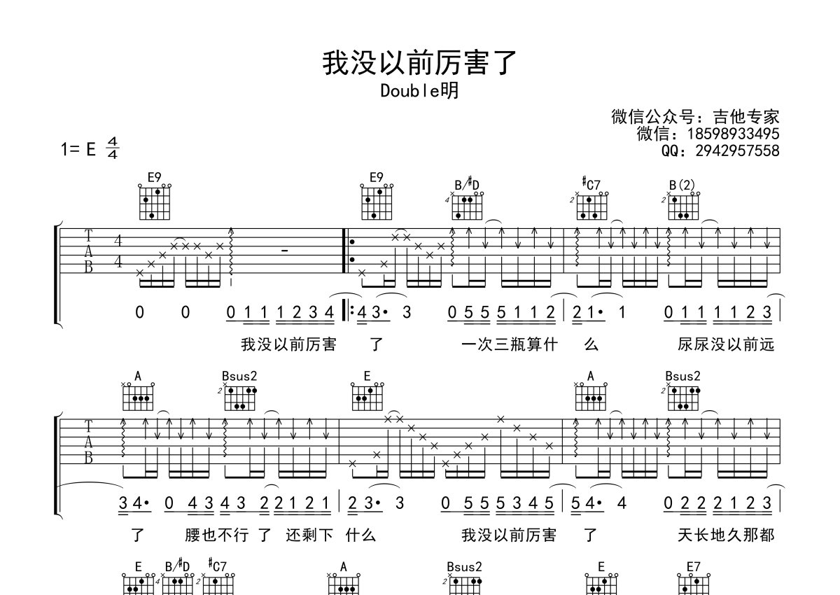 Double明《我没以前厉害了》吉他谱 - E调弹唱六线谱