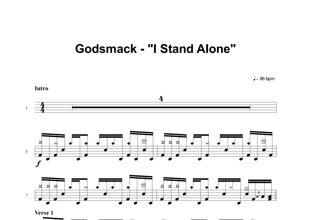 《I Stand Alone》是Godsmack演唱的一首歌曲,这份架子鼓谱共有五张高清图谱,图谱由 @举个例子 编配上传,图谱使用五线谱编配,使用这份I Stand Alone架子鼓谱,你将能够轻松地敲打出这首Godsmack的I Stand Alone,快来尝试吧。